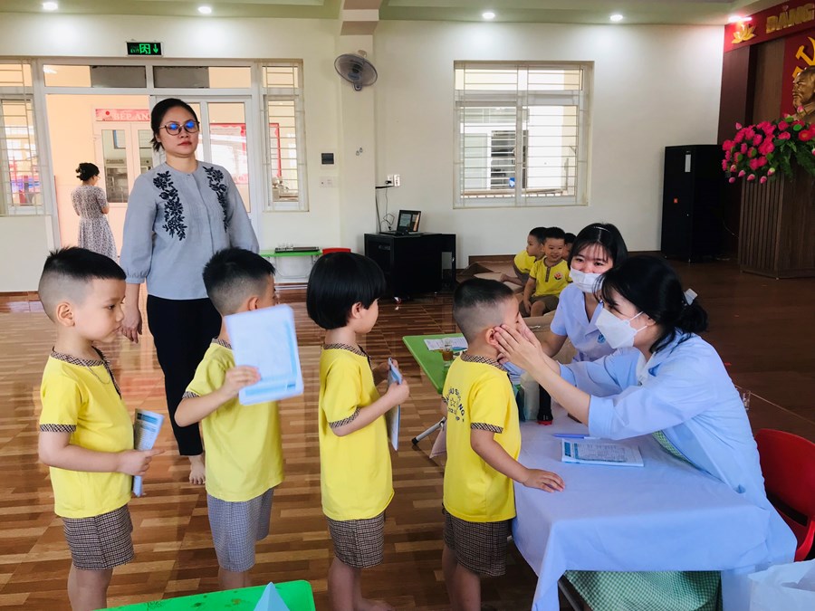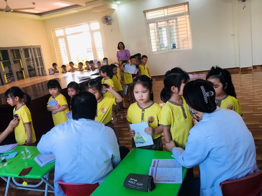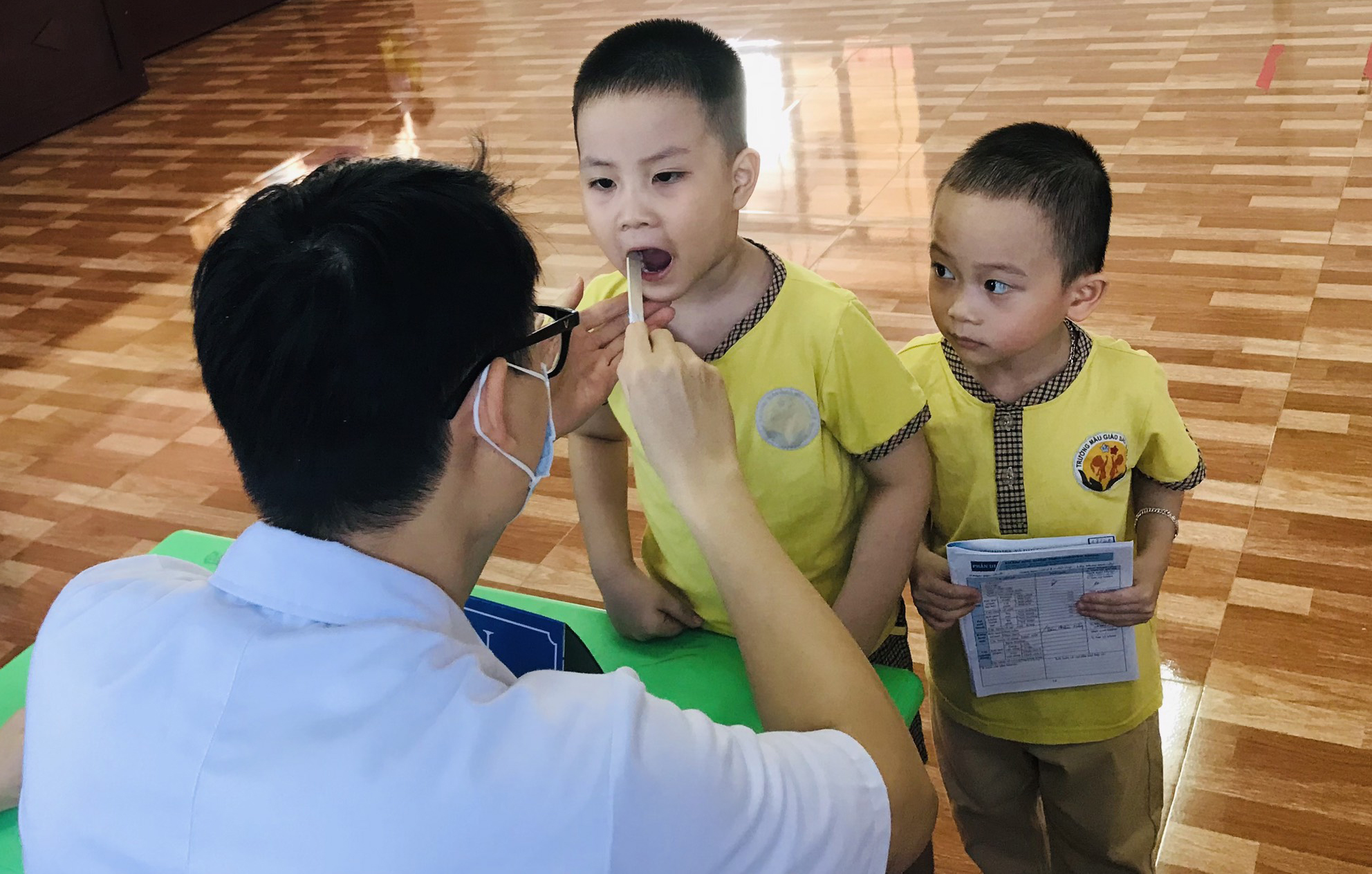 Các bé làm theo lời chỉ dẫn của bác sĩ