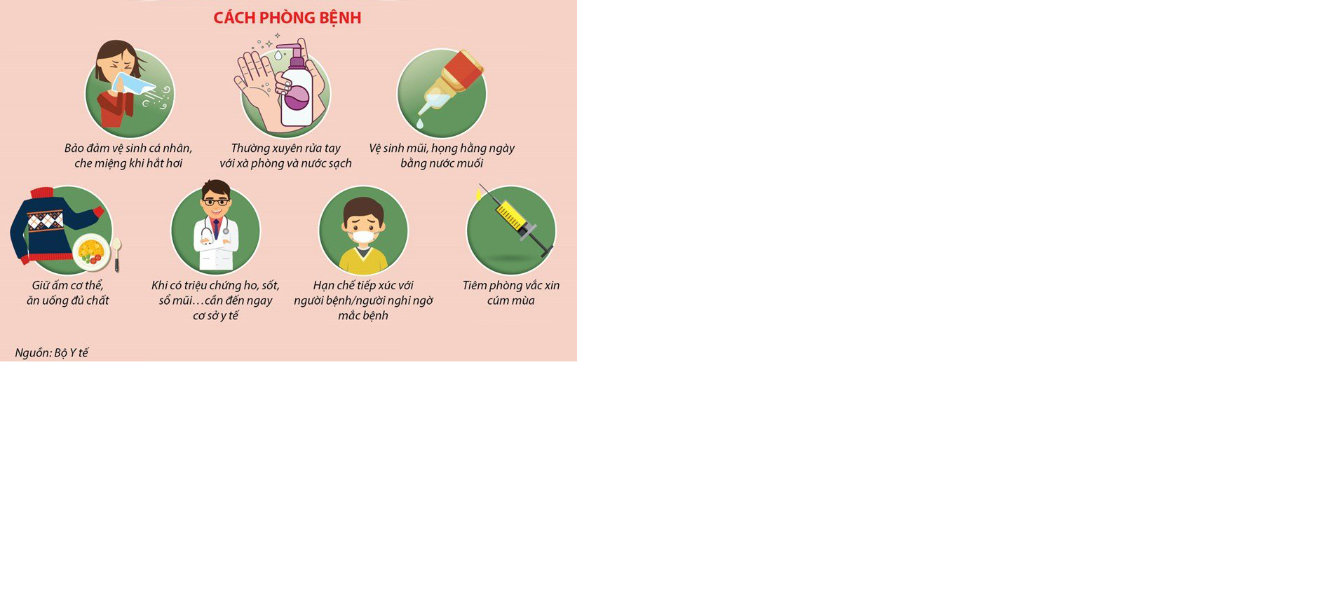 Bệnh cúm mùa là bệnh truyền nhiễm cấp tính với biểu hiện sốt, đau đầu, đau cơ, mệt mỏi, sổ mũi, đau họng và ho. Tác nhân gây bệnh chủ yếu do các chủng vi rút cúm A(H3N2), cúm A(H1N1), cúm B và cúm C. Bệnh có khả năng lây nhiễm rất cao, qua đường hô hấp thông qua các giọt nhỏ nước bọt hay dịch tiết mũi họng do hắt hơi, ho khạc.Cơ chế lây bệnh như thế nào? Dấu hiệu ra sao? Để hiểu, biết và phòng tránh bệnh, chúng ta cần biết một số kiến triệu chứng của bệnh cúm như sau: