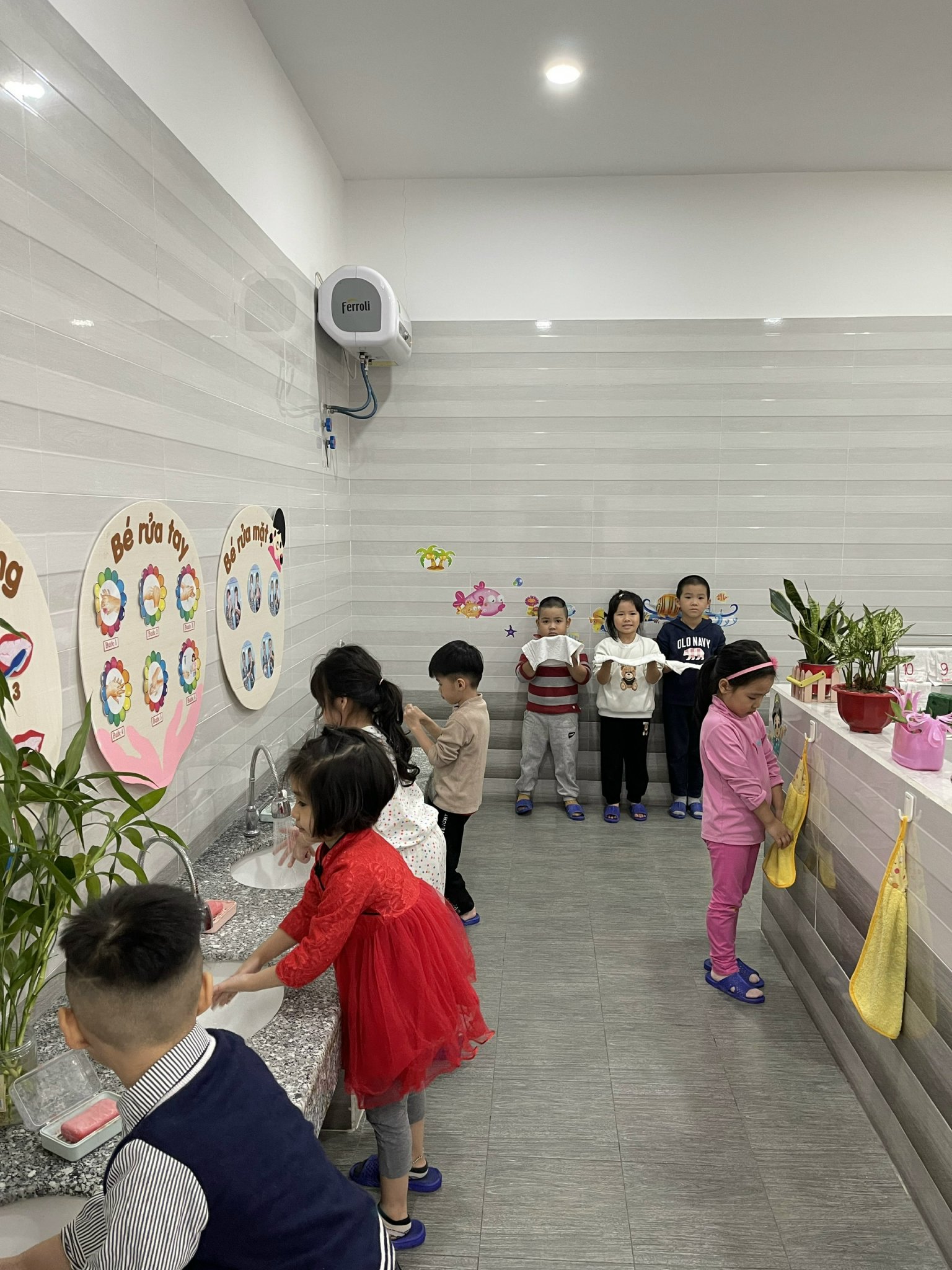 Ở trường mầm non việc rửa tay với xà phòng là một trong những hoạt động thường xuyên, liên tục hàng ngày của trẻ. Trẻ rửa tay xà phòng sau khi tiếp xúc với vật bẩn, sau giờ hoạt động ngoài trời, sau khi đi vệ sinh và đặc biệt trước giờ ăn.