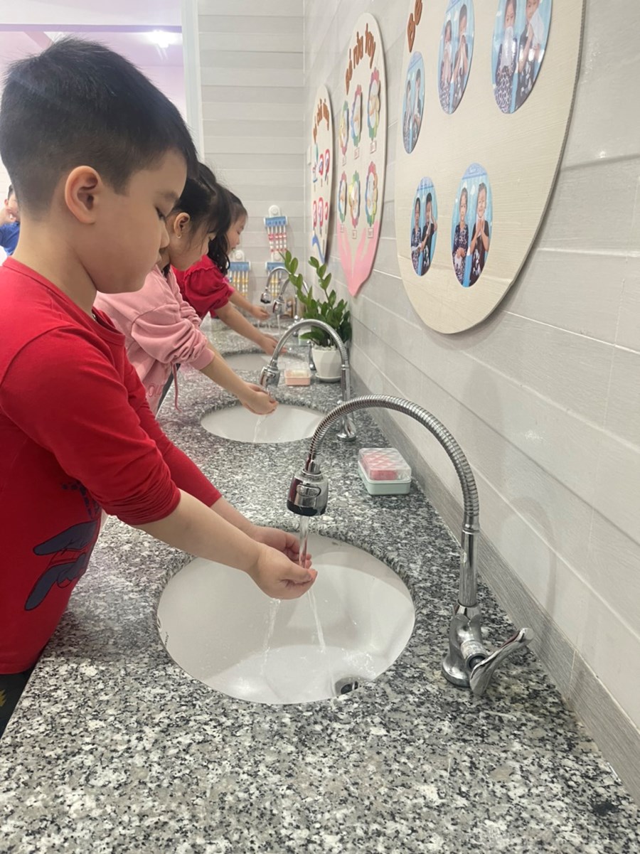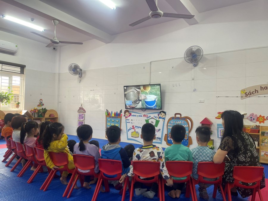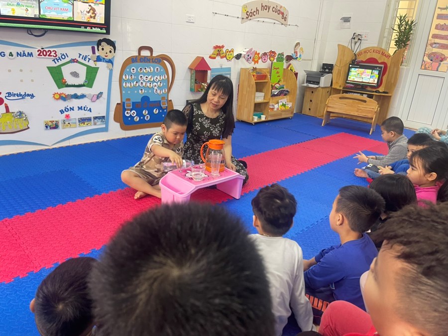 Thế là tháng 4 đã về! Các bạn lớp 5B hân hoan đón tháng mới với 1 chủ đề mới vô cùng thú vị, đó chính là chủ đề: “Nước”. Các bé được khám phá, trải nghiệm các hoạt động với “Nước” như: Rót nước, hứng nước, pha nước muối cũng như xem các video về nước. Qua các hoạt động trên các bé biết được các đặc điểm nổi bật của nước: Nước không màu, không vị, hòa tan được 1 số chất và nước chính là nguồn sống các tất các chúng ta.