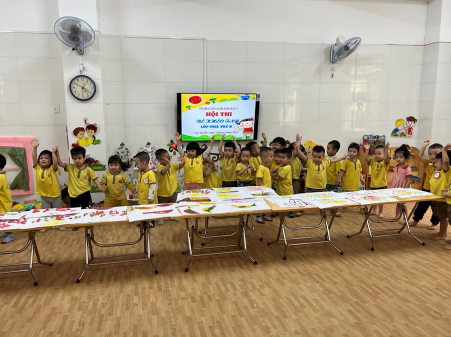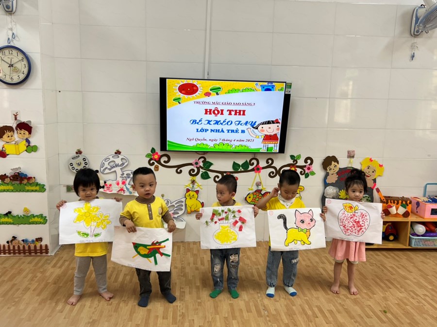 Hôm nay cô trò lớp nhà trẻ B đã tham gia hội thi" Bé khéo tay" trong niềm vui tươi, phấn khởi. Những sản phẩm đầu tay của các con dù chưa hoàn thiện nhưng các con đã thể hiện được khả năng của mình và đã hoàn thành xong bức tranh để khoe với bố mẹ. Lớp NTB có 05 bức tranh được nhận giải: Tranh của Anh Tuấn, Minh Khang, Thảo Tiên, Phương Thảo, Phúc Thành. Các cô chúc mừng tất cả các con. Bố mẹ cùng xem một số hình ảnh trong ngày hôm nay nhé.