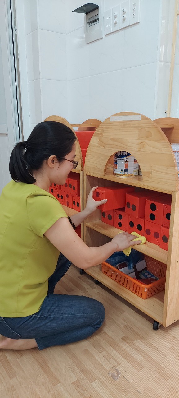 Lớp nhà trẻ B luôn thực hiện nghiêm túc công tác tổng vệ sinh lớp học, lau rửa đồ dùng - đồ chơi, sắp xếp nội vụ gọn gàng giúp cho môi trường học tập, vui chơi của các con trong nhà trường luôn được đảm bảo an toàn trước dịch bệnh. Bố mẹ hãy yên tâm khi gửi con đến trường!